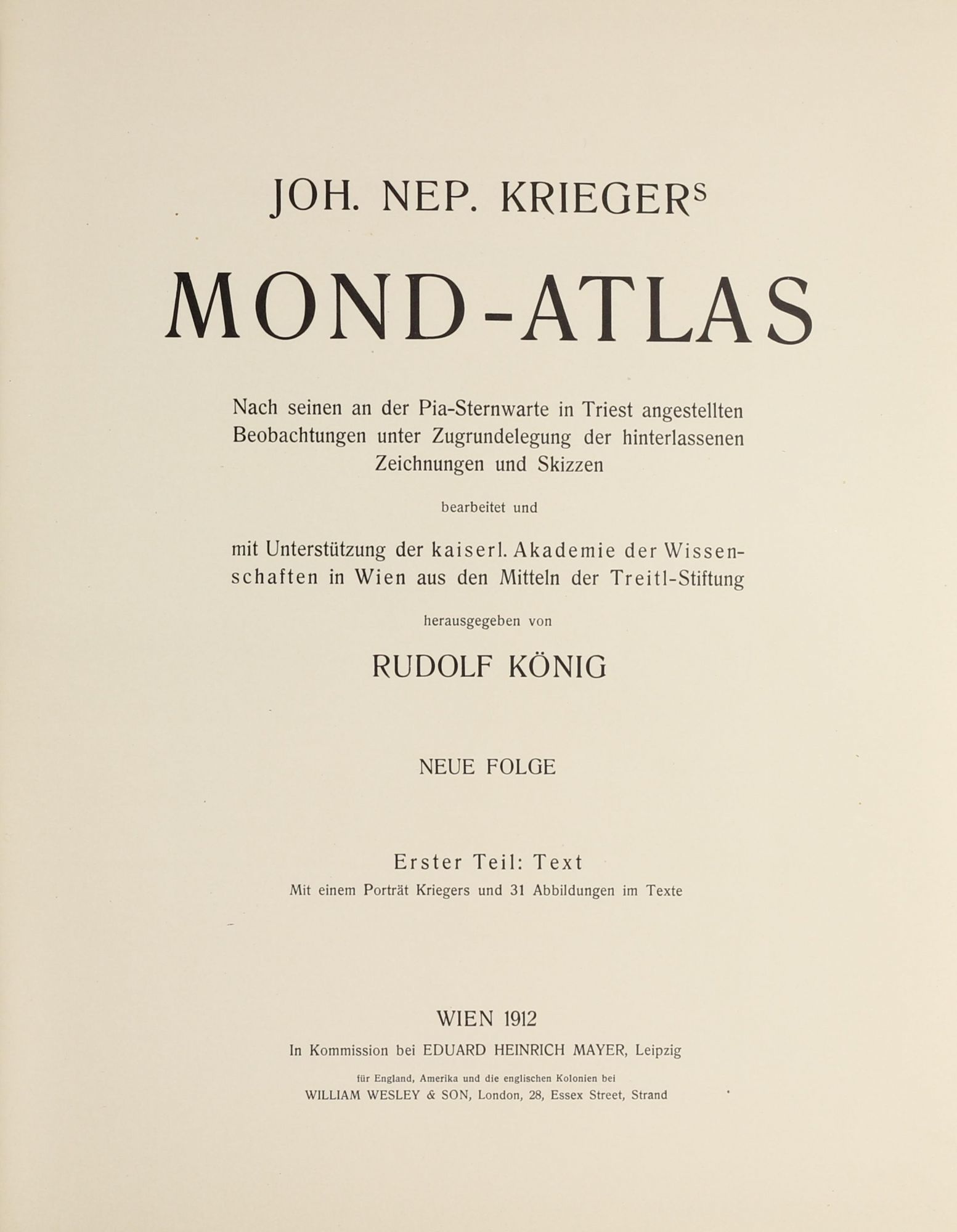 Кеніг був співредактором «Mond Atlas» Крігера. Після смерті Крігера він залишив масу невпорядкованих описів і ескізів спостережень Місяця. щоб довести все до ладу, Кеніг провів два роки спостережень  і протягом п'яти років упорядкував два томи Крігера, включаючи його малюнки репродукції та ескізи, а також необхідний високий друк. У 1912 році Кеніг опублікував збірку ілюстрацій Місяця Йоганна Крігера.