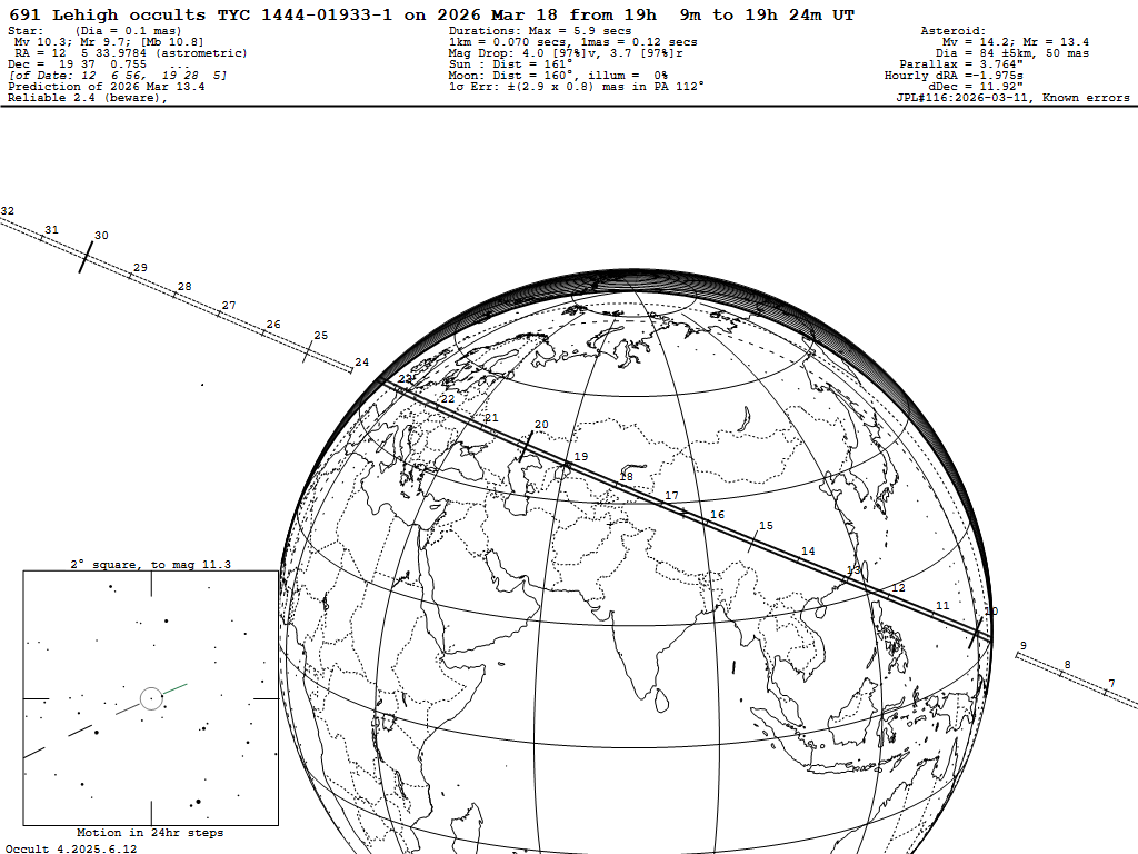 18 березня о 21-21 за києвом астероїд (691) Lehigh закриє зорю 10. 6 m